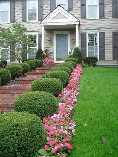Evergreen background plantings show off flower color particularly well and give the corporate landscape struction and substance through the seasons, Turner says. The idea works well at home too. A garden with nicely planted everygreen shubery will never look rundown.