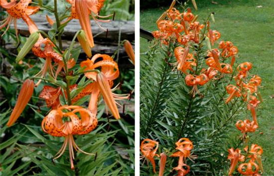 Tiger lilies do best in full sun and must have well-drained soil. If you aren’t naturally blessed with the drainage, then dig in some expanded shale to help out. The first year after planting you may get only one small flower spike, but every year after that, more spikes appear with more flowers. I love this plant mixed with bright chartreuse foliage and dark purple flowers. Tiger lilies also mix well with perennial grasses, adding some much-needed color to their foliage.